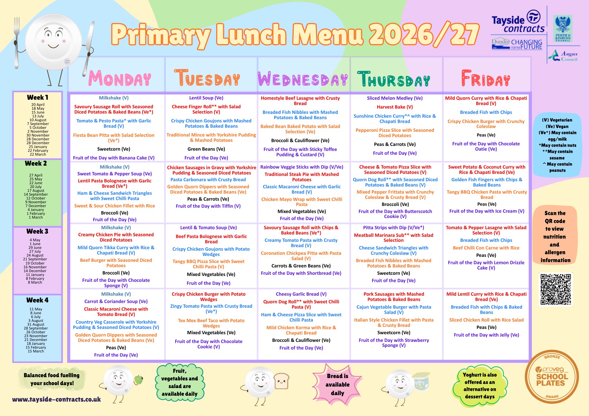For carbohydrate menus for themed days please visit: School Catering by Tayside Contracts and go to Primary School Meal service.